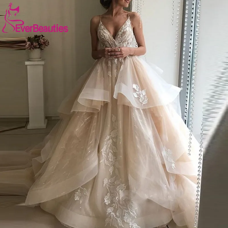 Big Discount Ball Gown Wedding Dress 2020 Appliques Lace Tulle Light Champagne Wedding Gowns Bride Dress
