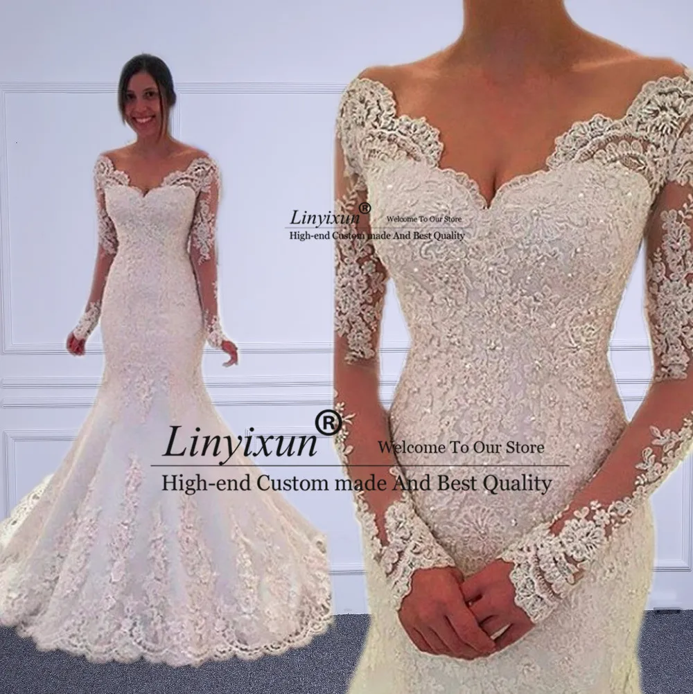 Gelinlik Mermaid Wedding Dress Long Sleeves for Bridal 2019 Vestido De Noiva Summer Lace Beaded Ivory Bridal Gowns trouwjurk :Click Here
