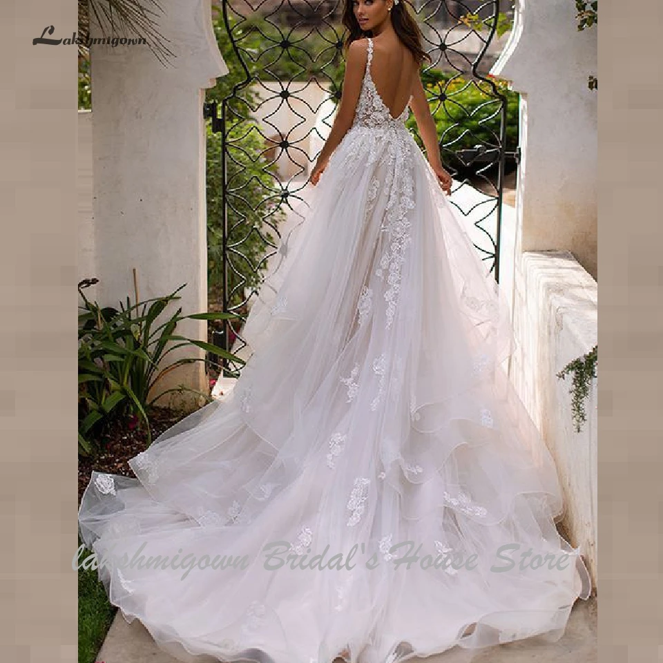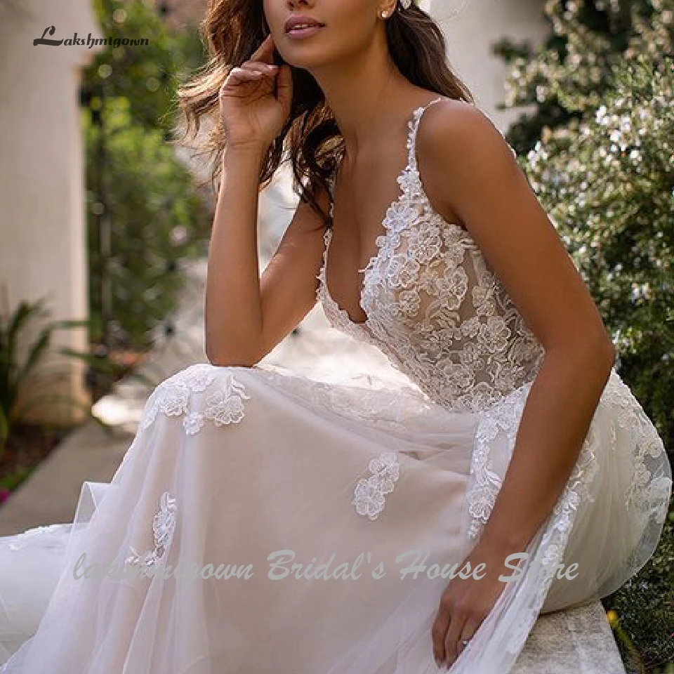 Lakshmigown Floral Boho Lace Wedding Dress 2019 Vestidos de Novia Deep V Neck Sexy Bridal Gown Wedding Gowns for Beach Party :Click Here