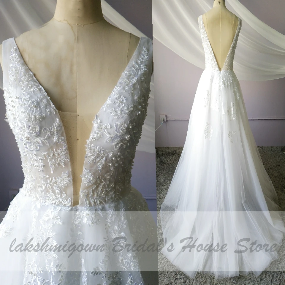 Lakshmigown Princess V Neck Wedding Dress A Line 2020 New Designer Hochzeit Sexy Bridal Dresses Lace Wedding Gowns Open-Back :Click Here