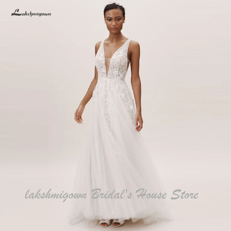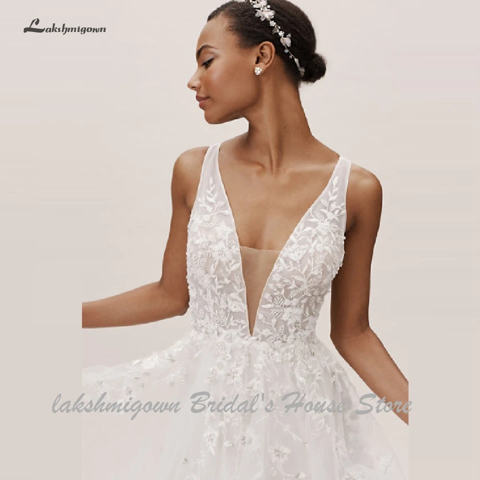 Lakshmigown Floral Boho Lace Wedding Dress 2019 Vestidos de Novia Deep V Neck Sexy Bridal Gown Wedding Gowns for Beach Party :Click Here