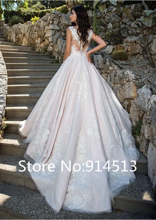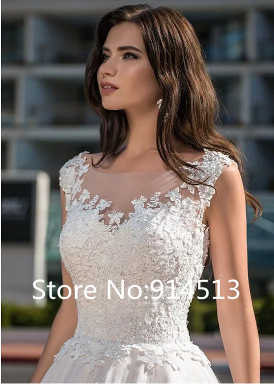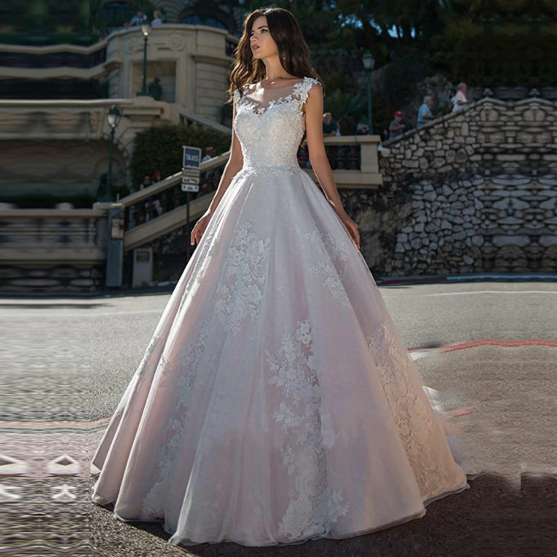 Best Product Fascinating O Neck A-line Wedding Dress Tulle With Lace Appliques Ball Gown Wedding Gowns Button Ba