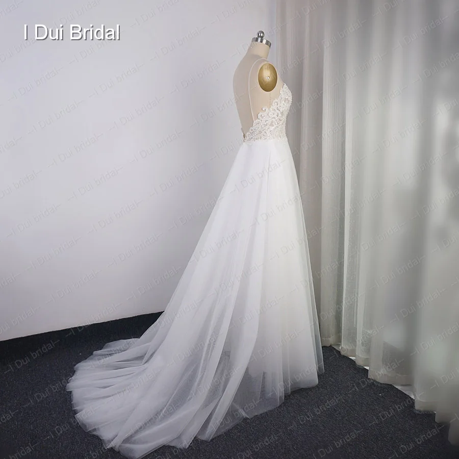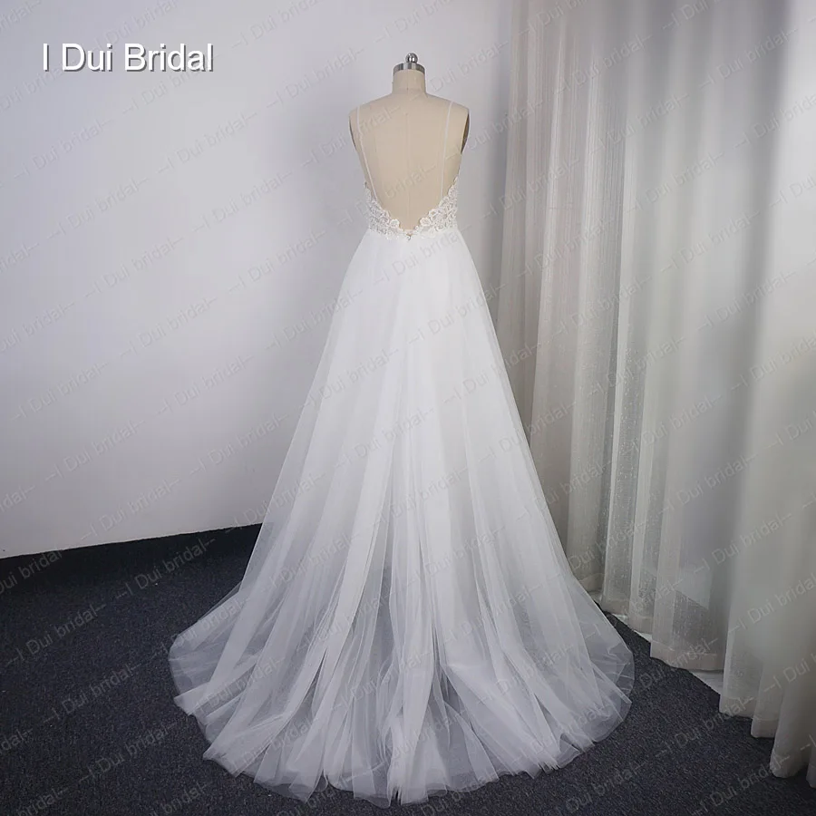 Goods Boho Wedding Dress Lace Tulle A Line Bare Low Back Reception Dress Bridal Gown