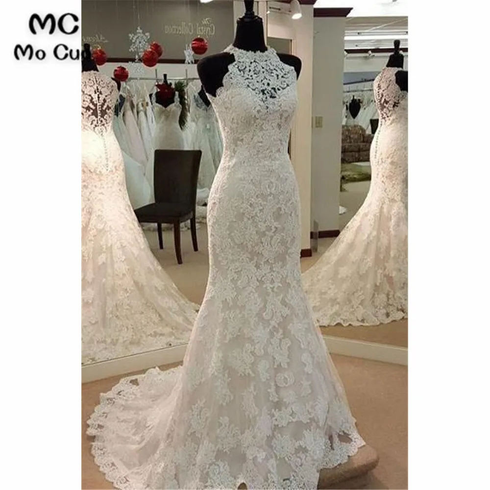 Post a Comment for "Big Discount Elegant Mermaid Lace Wedding dresses Button Appliques Beaded High Neck Tulle Illusion Bridal Gown W "