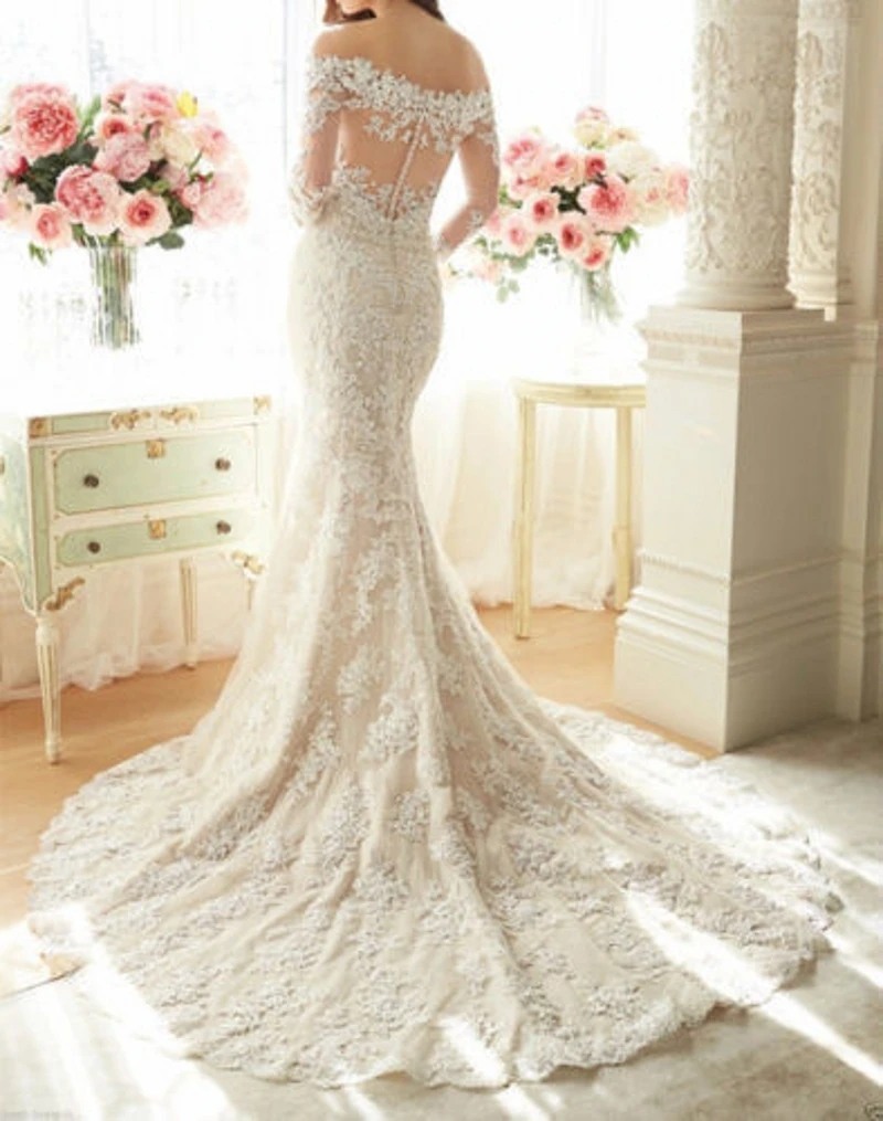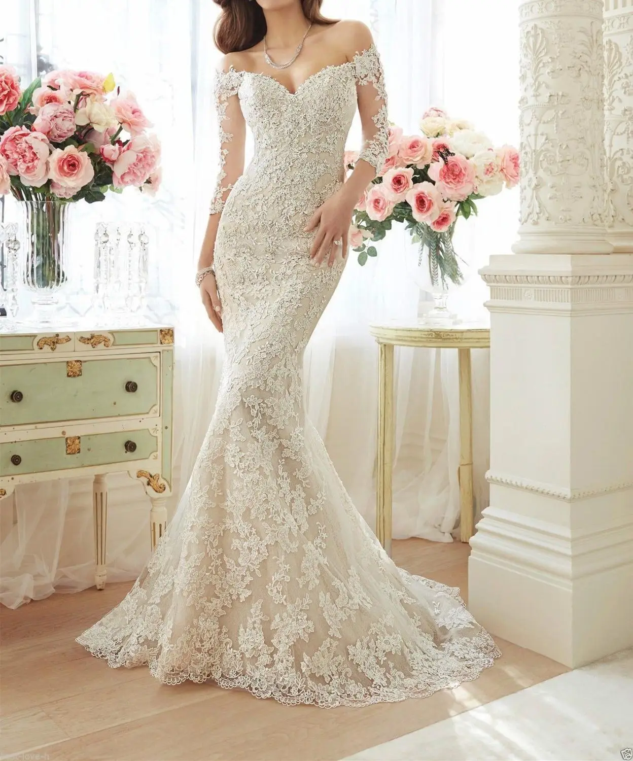 Post a Comment for "Buy Elegant Off the Shoulder Half Sleeve Mermaid Wedding Dress 2019 See Through Illusion Back White Bri "