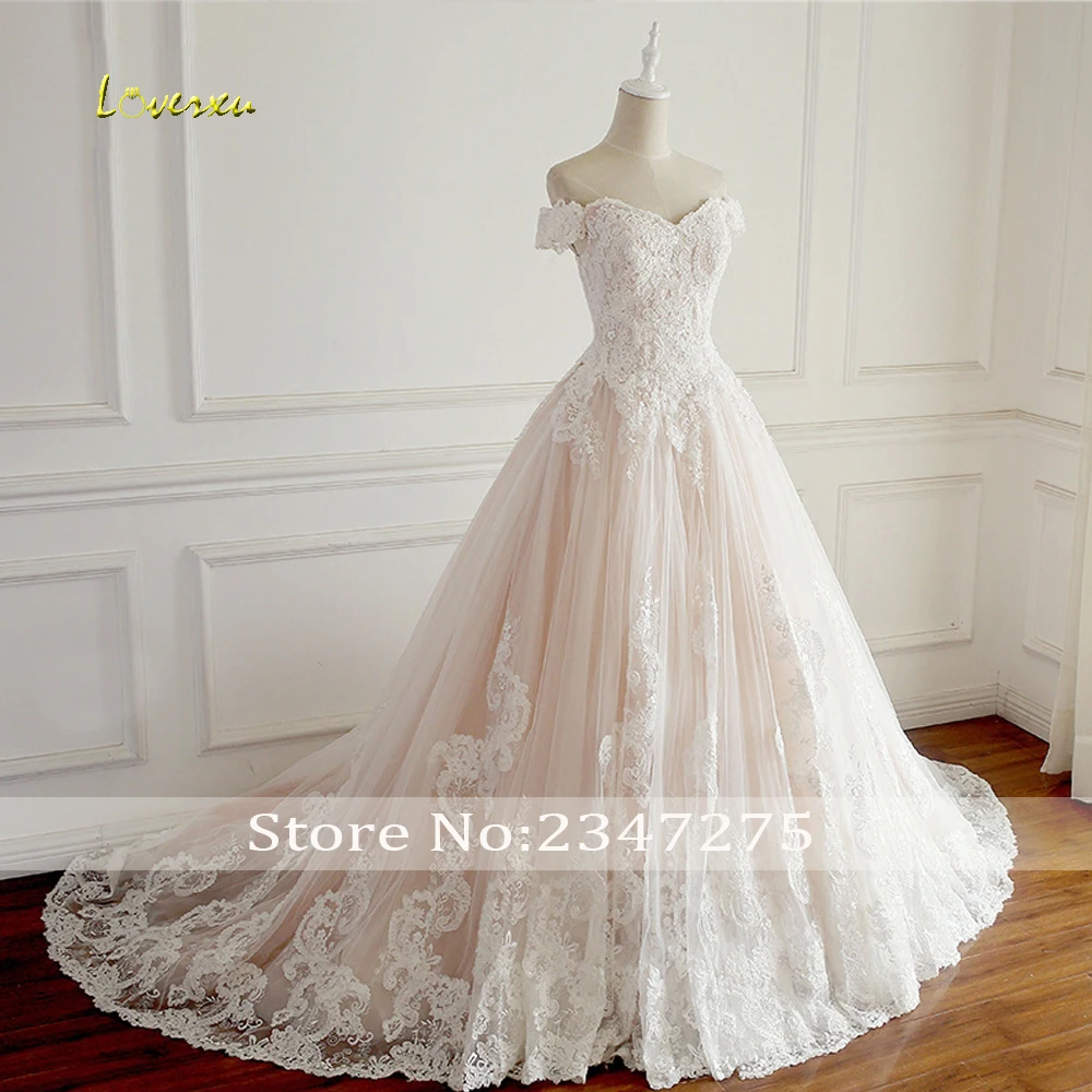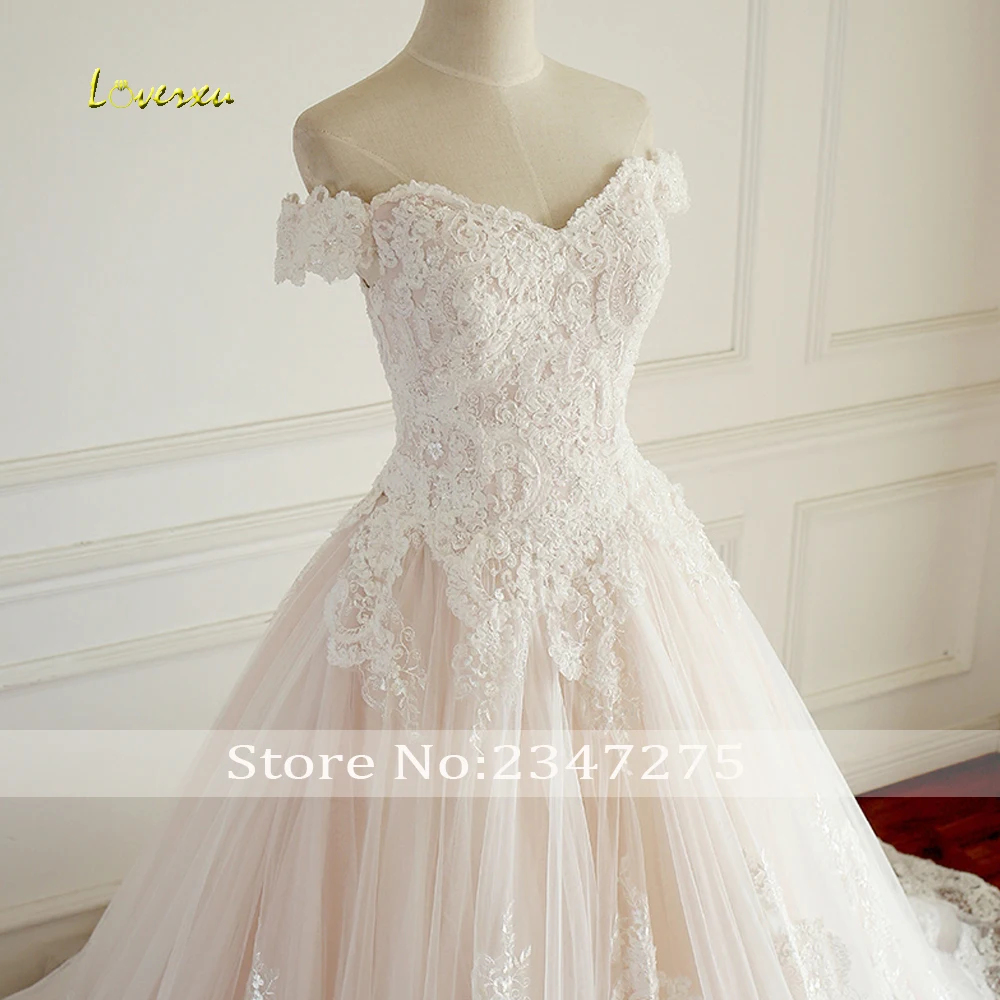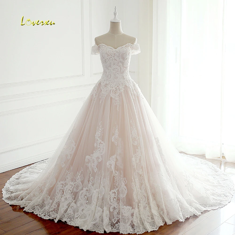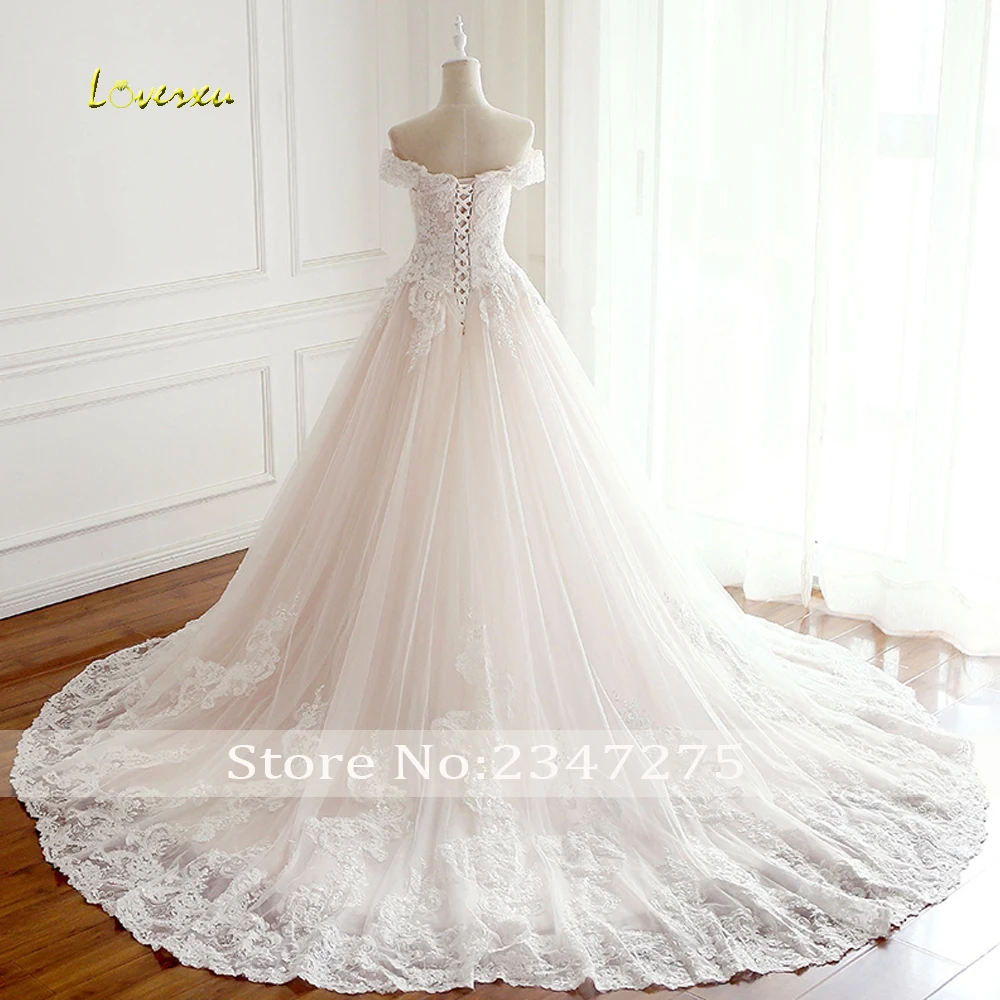 Loverxu Vestido De Noiva Lace Ball Gown Wedding Dresses 2019 Sexy Boat Neck Appliques Beaded Royal Train Flowers Bridal Gowns :Click Here