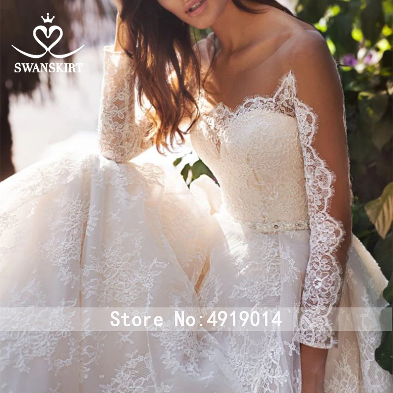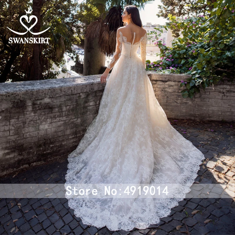 Fashion Appliques Lace Wedding Dress 2019 Swanskirt O-Neck Long Sleeve A-Line Size Bridal gown Princess Vestido de noiva UZ27 :Click Here