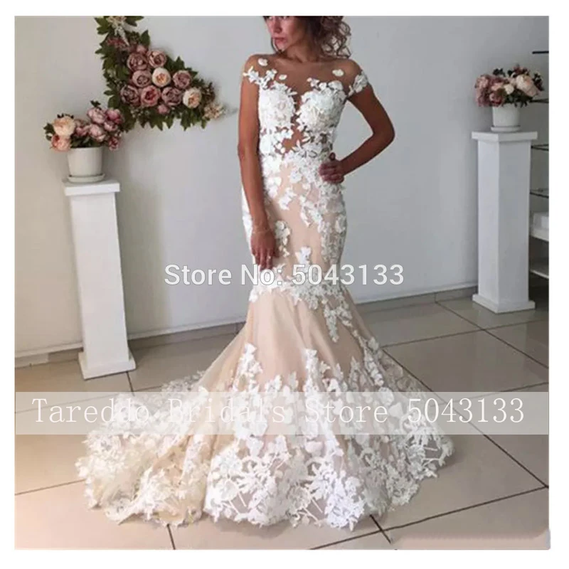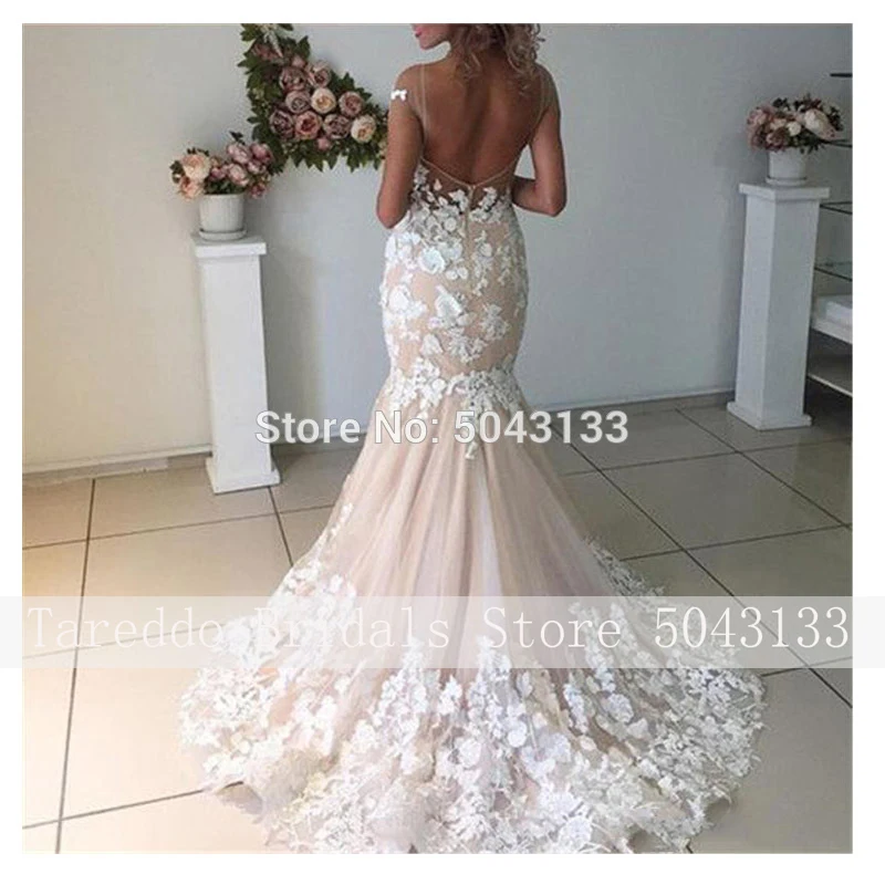 Luxury Champagne Wedding Dresses 2020 Sexy Backless Mermaid Wedding Gowns Romantic Lace Appliques Robe De Mariage Bride Gowns :Click Here