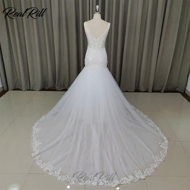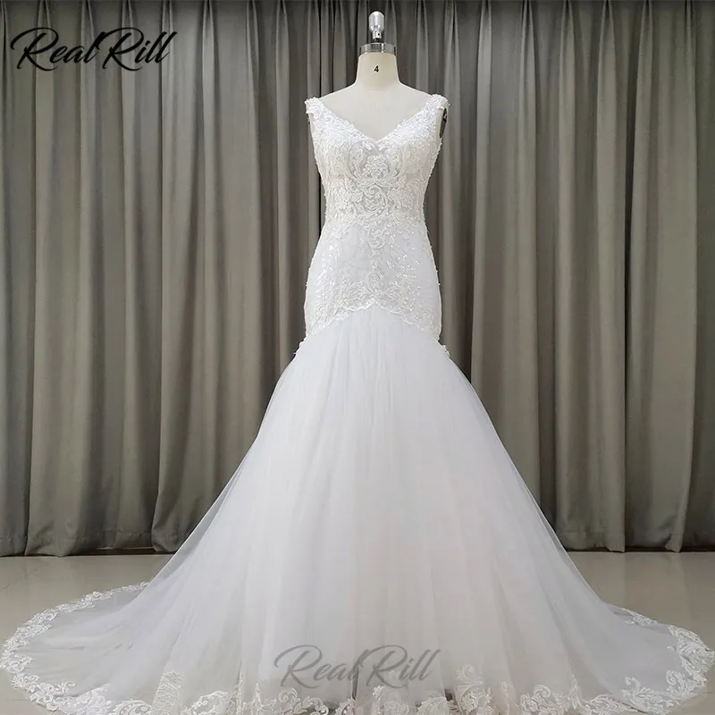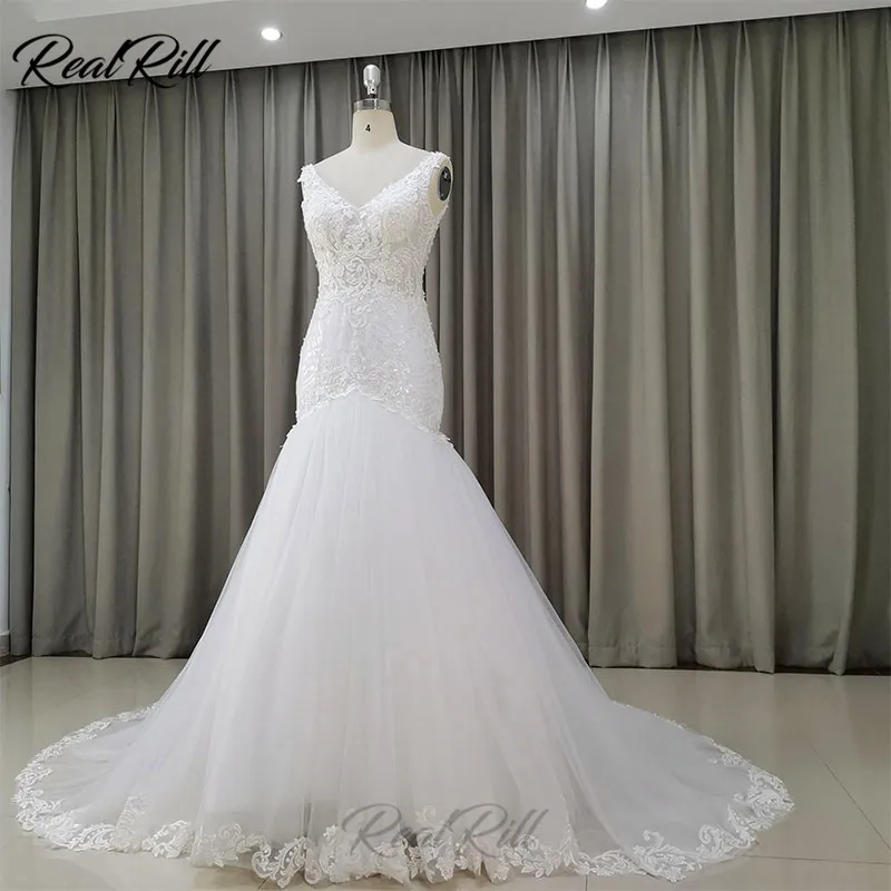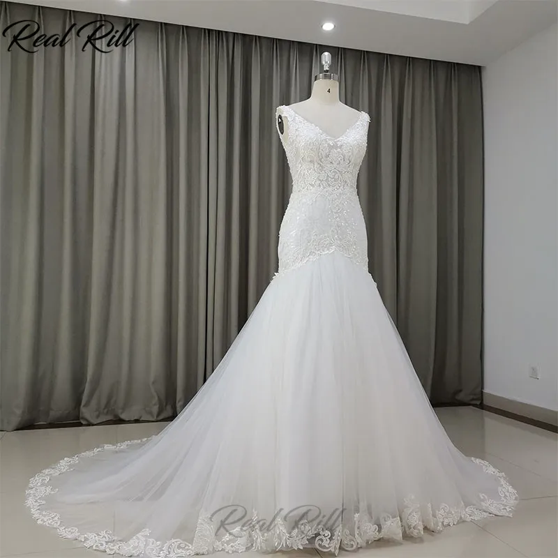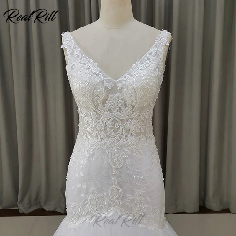 Big Sale Real Rill V-Neck Mermaid Wedding Dress 2019 Mariage Tulle Wedding Gowns With Lace Appliques Lace Ed