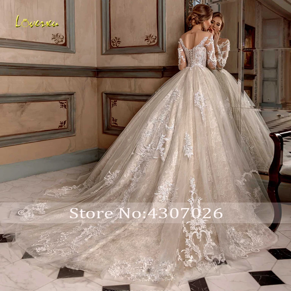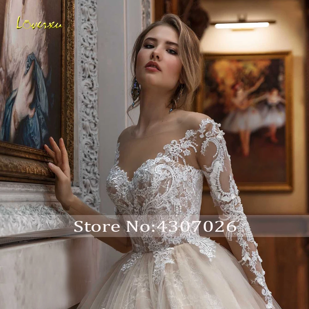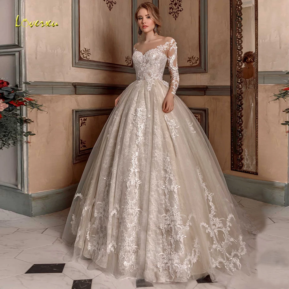 Collection Loverxu Illusion Scoop Ball Gown Wedding Dresses 2019 Appliques Long Sleeve Lace Up Bride Dress Cou