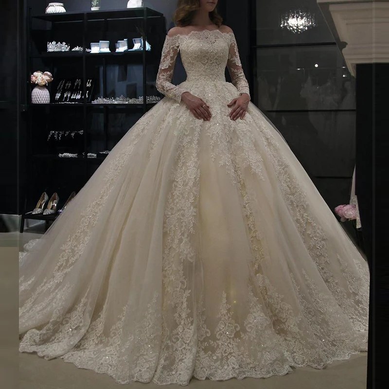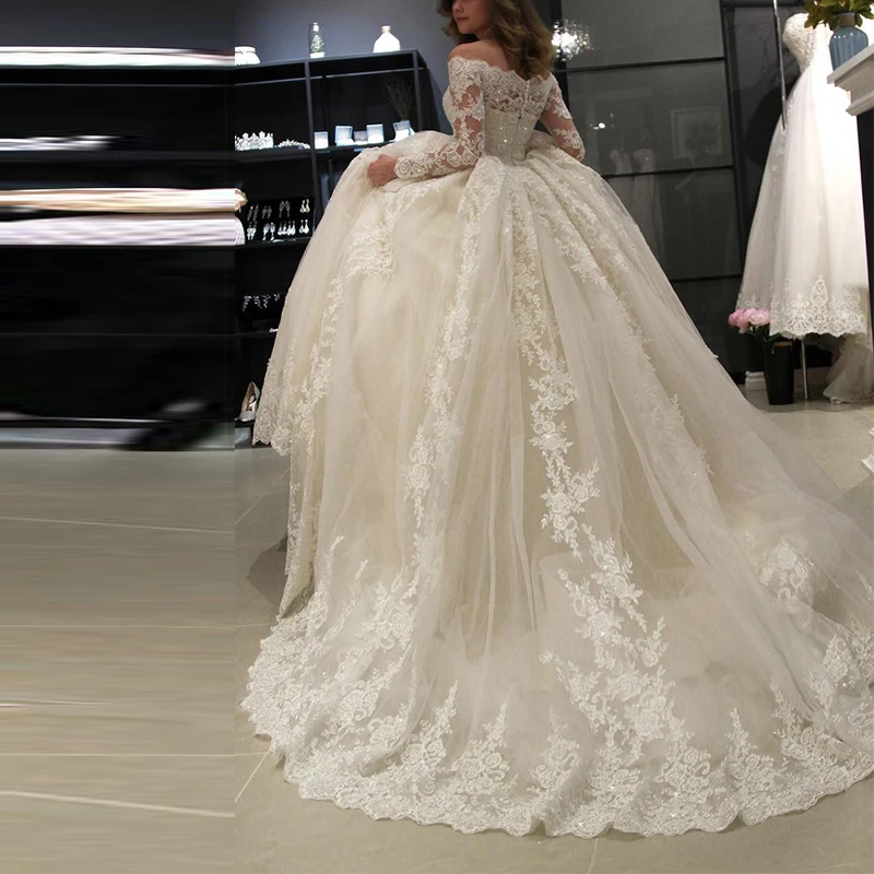 Post a Comment for "Trend Graceful Wedding Dress Sleeves Off Shoulder Sequined Lace Appliques Ball Gown Bridal Dress Robe De "