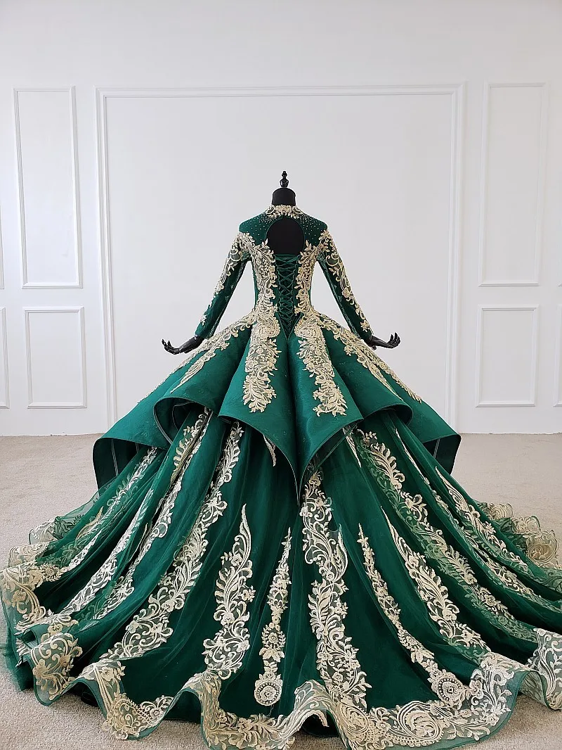 New Arrival BacklakeGirls HT12281 Round Neck Vintage Lace Luxurious Ball Gowm Party Dresses Women Evening Dress
