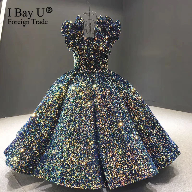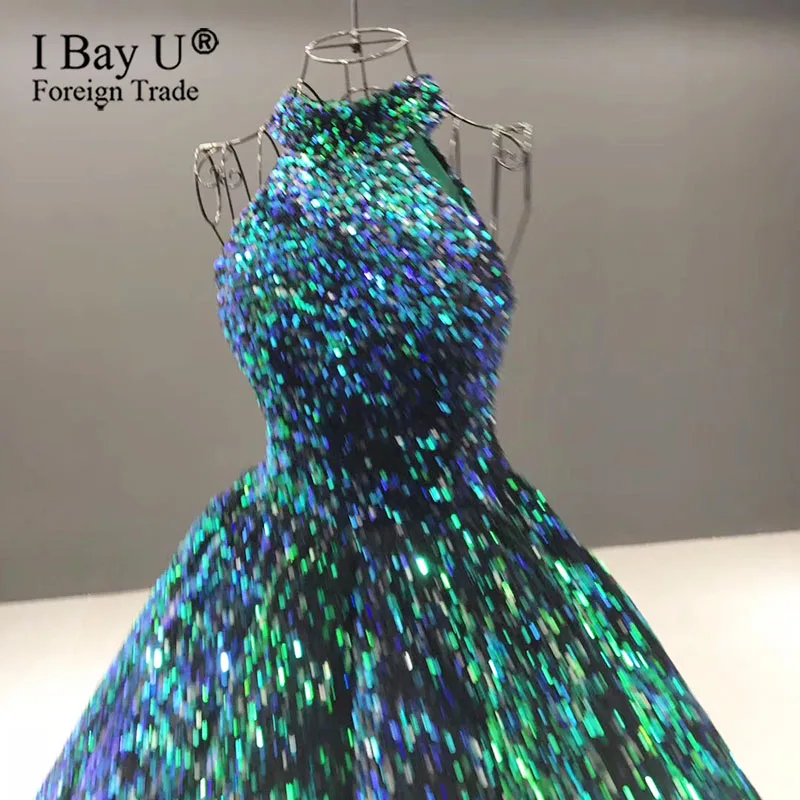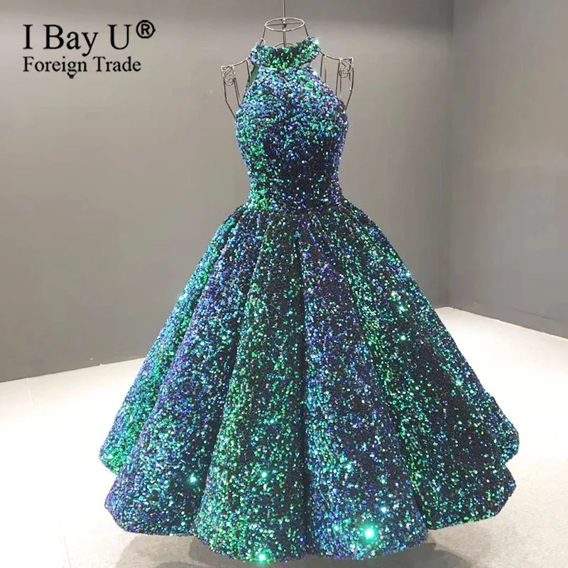 Big Discount Sparkly Green Sequin Prom Dresses Ball Gown for Party Formal Evening Gown Dress Sleeveless
