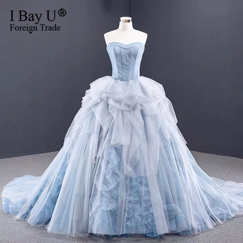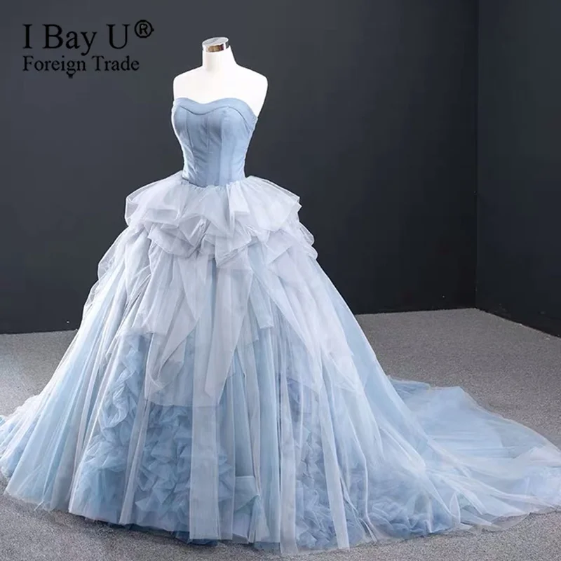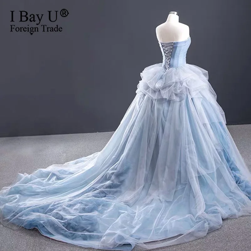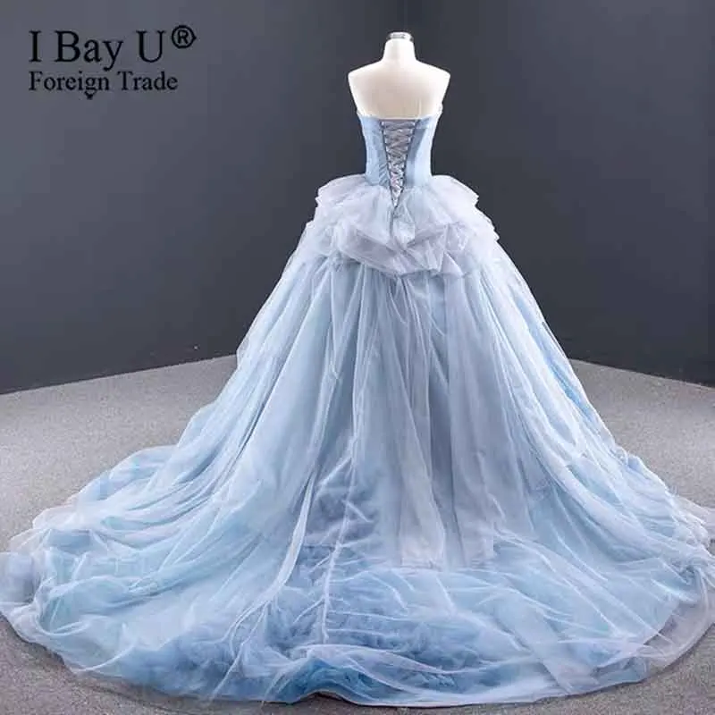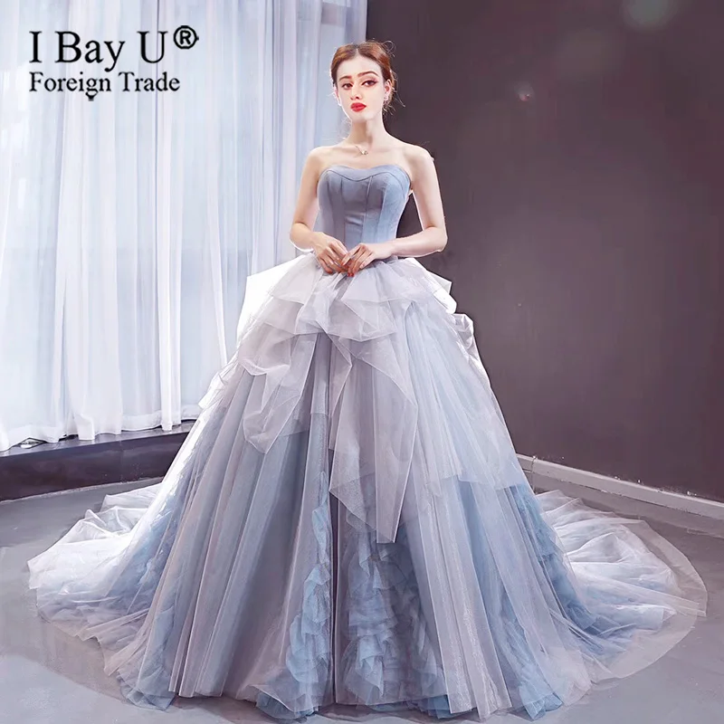 Trend Product Neutral Grey High Quality Sleeveless Corset Wedding Dresses 2020 Handmade Flowers Lace Up Bridal Go