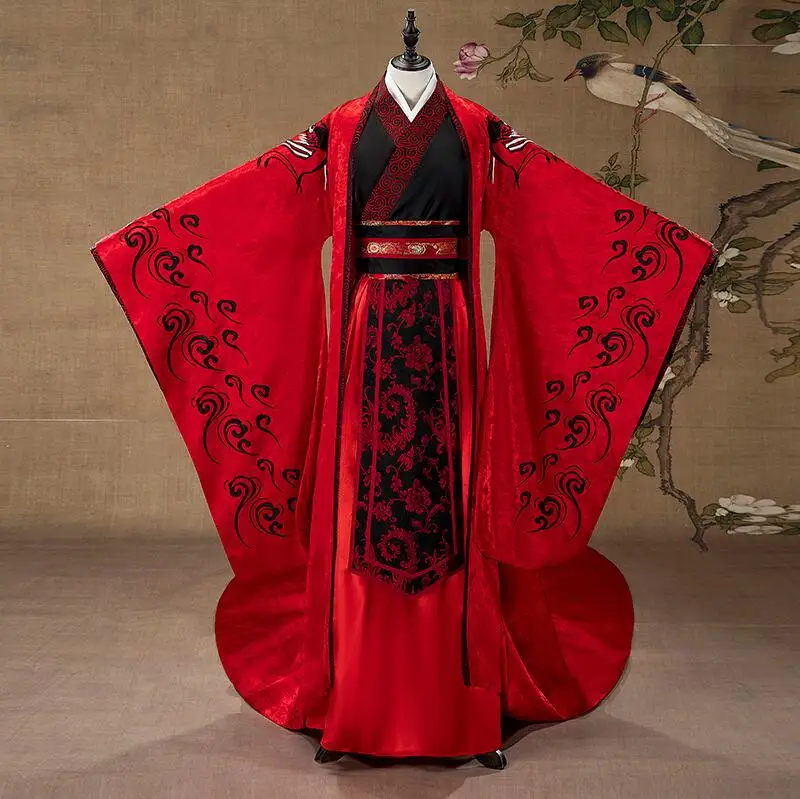 Chinese Style Ancient Wedding Clothing Antique Groom Garment Red Couple Lovers Hanfu Wedding Costume With Long Tail Bride Dress :Click Here