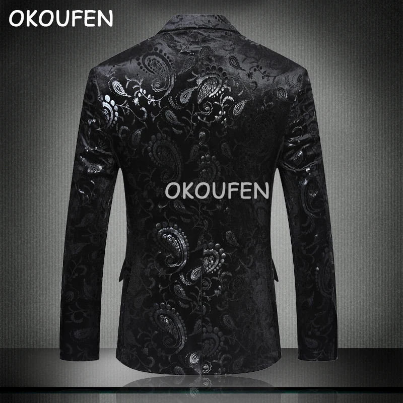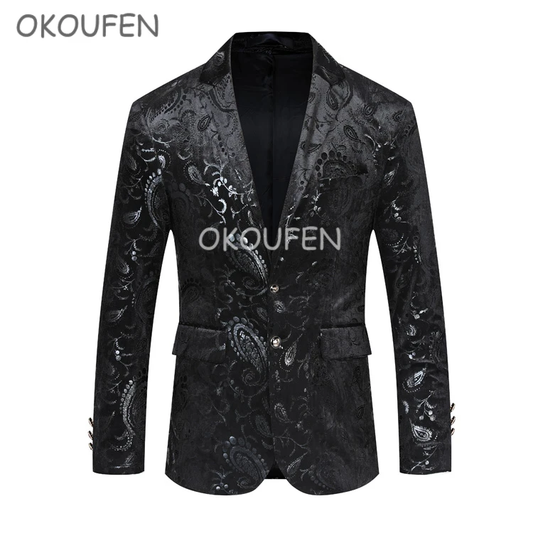 Trend 2019 Spring and Autumn New Fashion Men's Slim Print suit Wedding banquet Formal dress Party Prom st