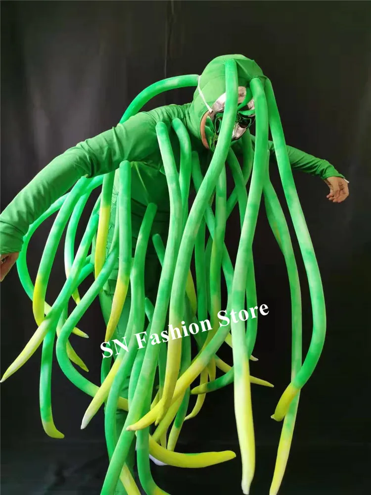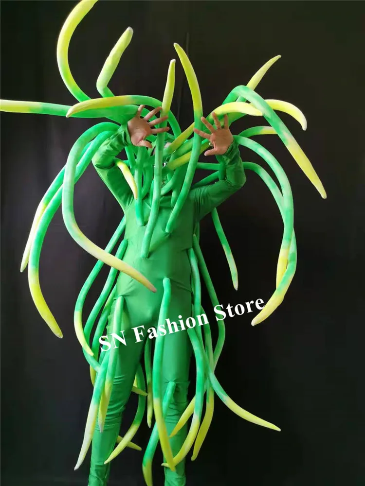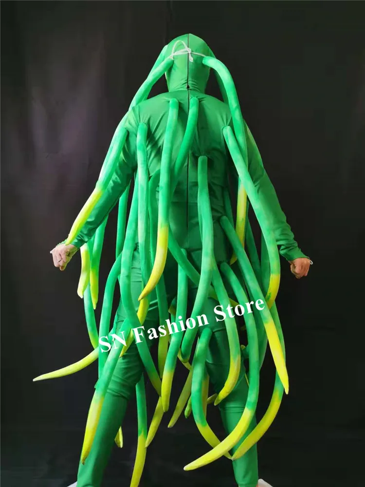 Popular Q11 Cosplay stage dance fluorescent green jumpsuit male costumes dj spike outfit stretch bodysuit b