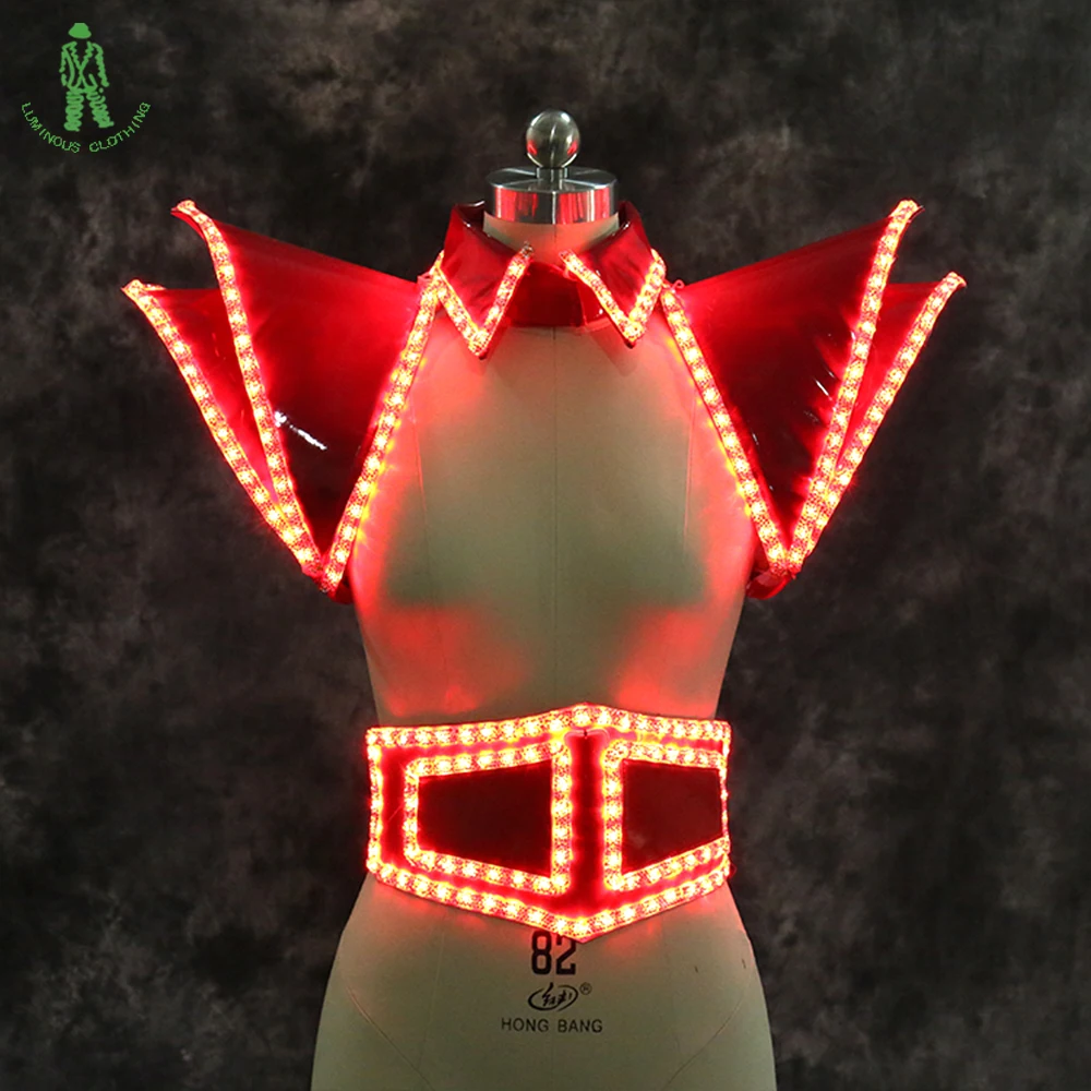 Post a Comment for "Latest Product Red Color Luminous Costume Armor LED Light Dress Suit For Club Party Stage Dance Wear Sexy Bra C Mo "