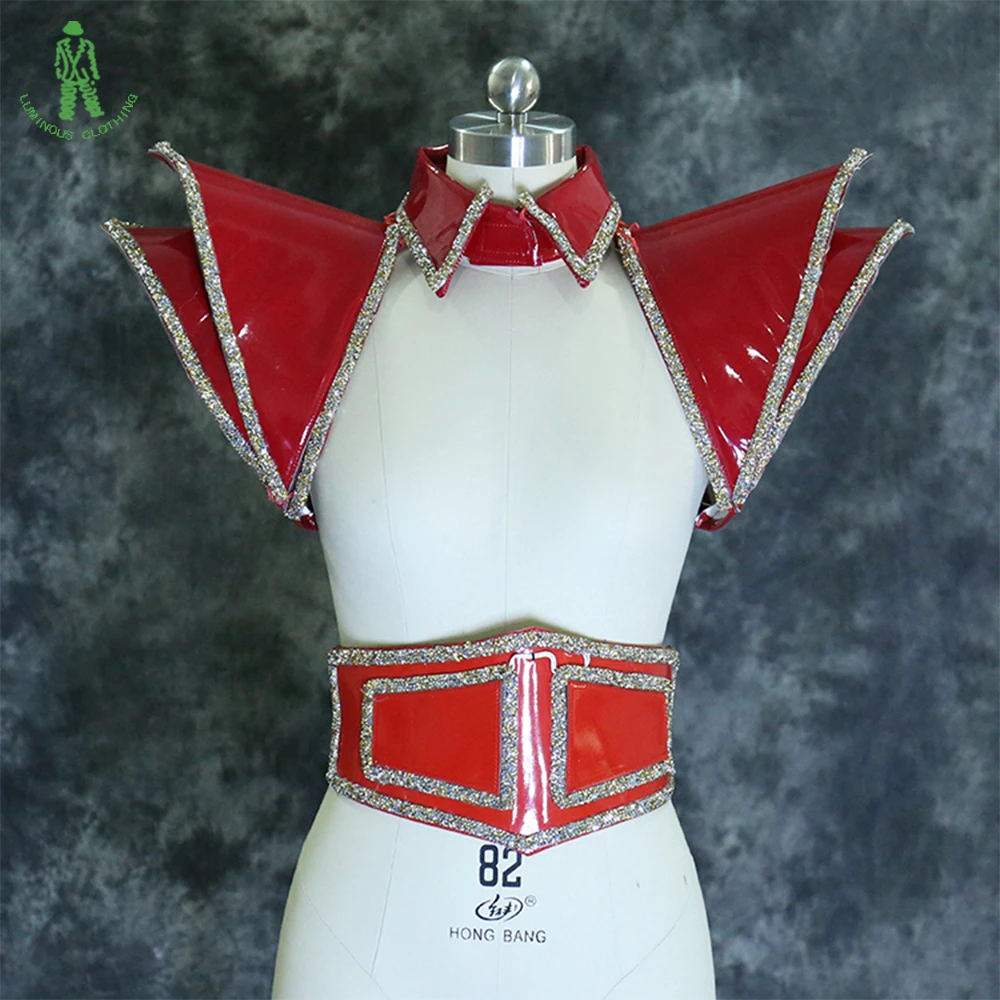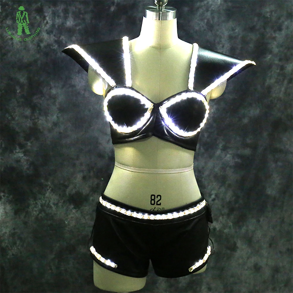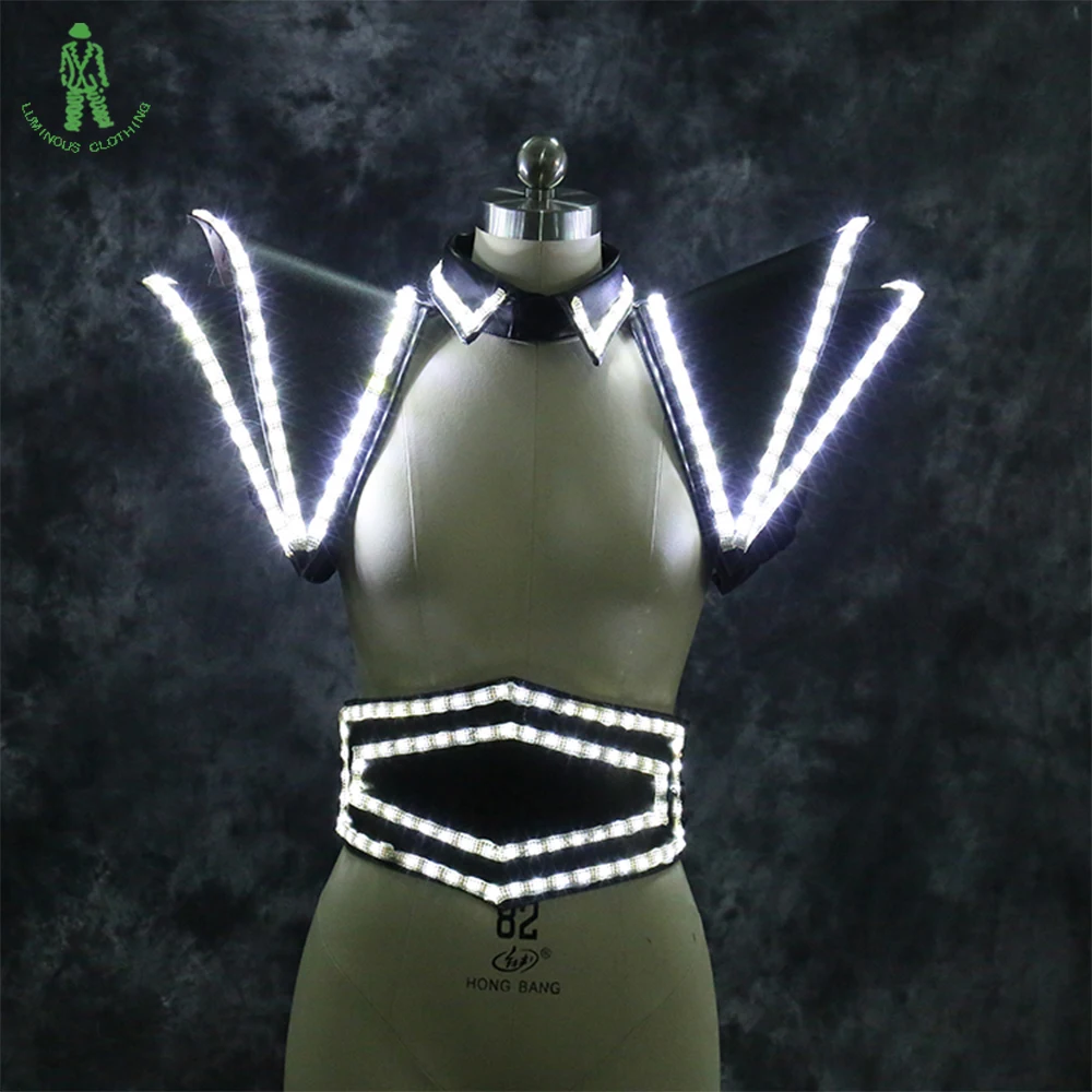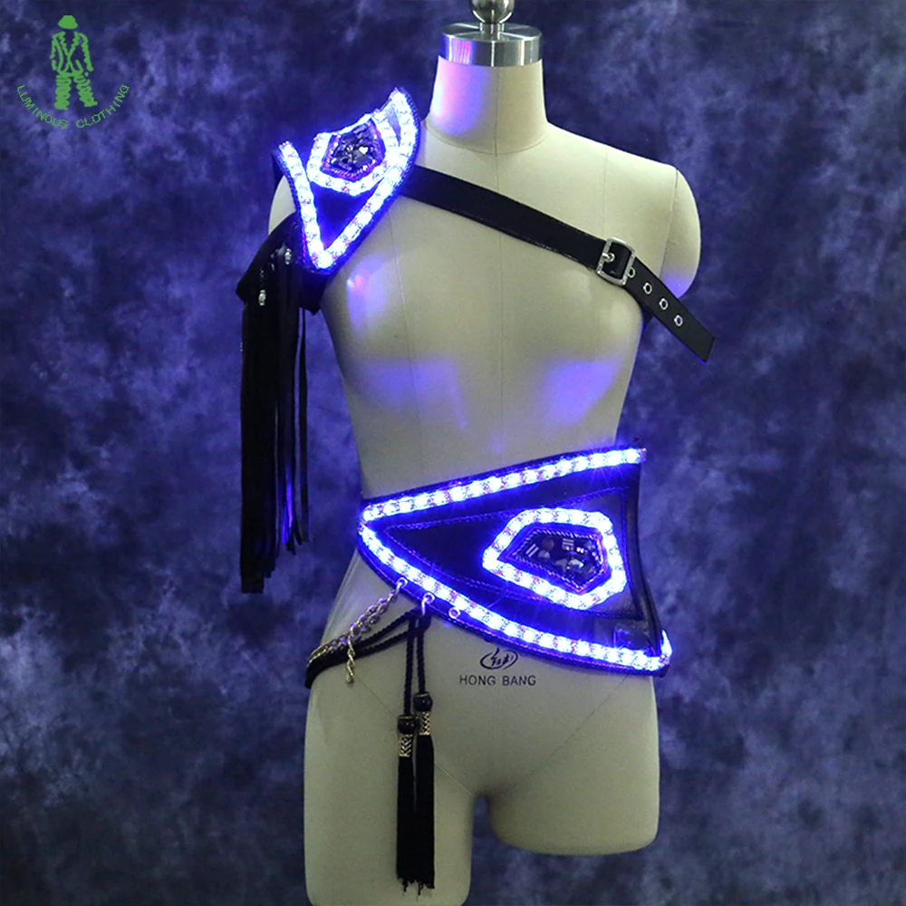 Goods Red Color Luminous Costume Armor LED Light Dress Suit For Club Party Stage Dance Wear Sexy Bra C Mo