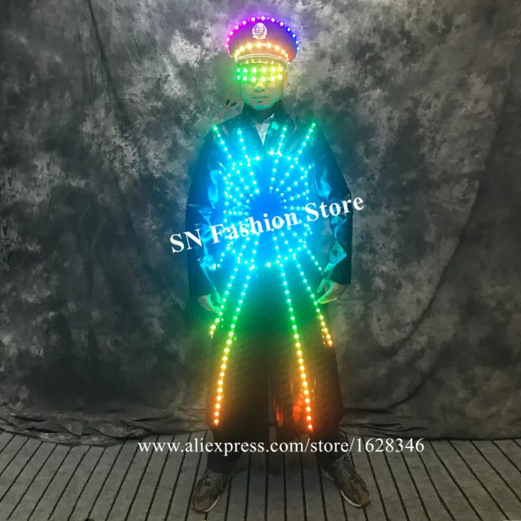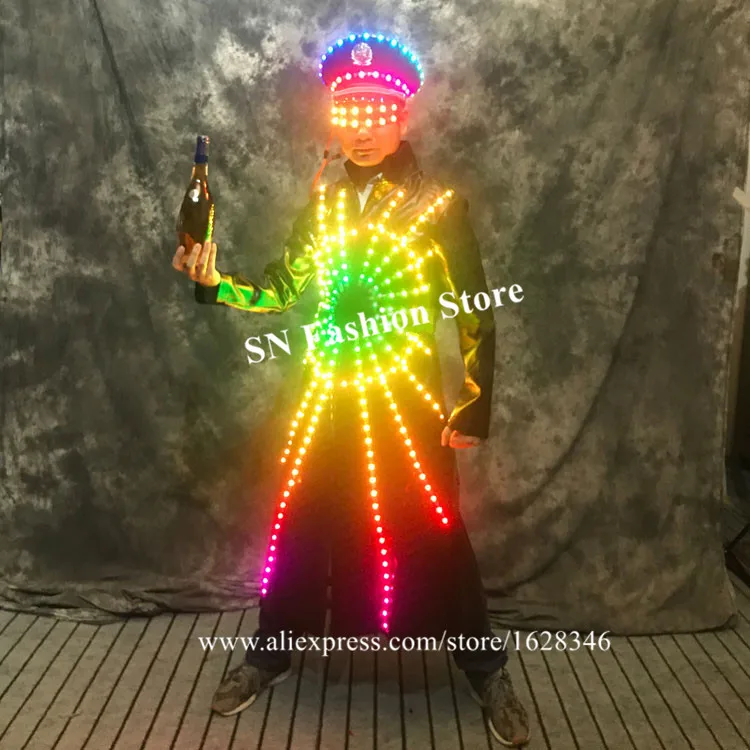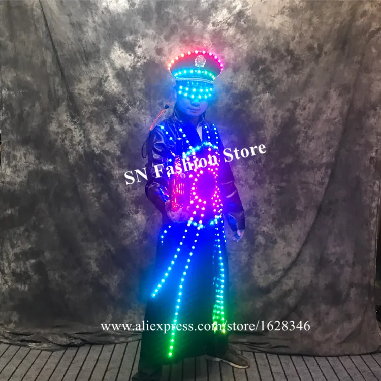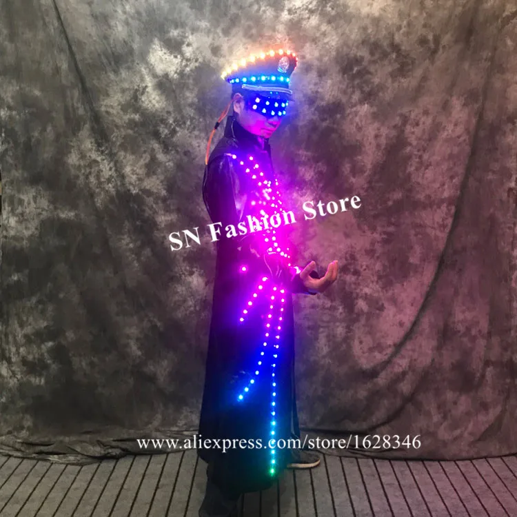 1LED robot dance costumes wearable ballroom robot clothes men stage wears led helmet full color RGB light suit led Programmable :Click Here