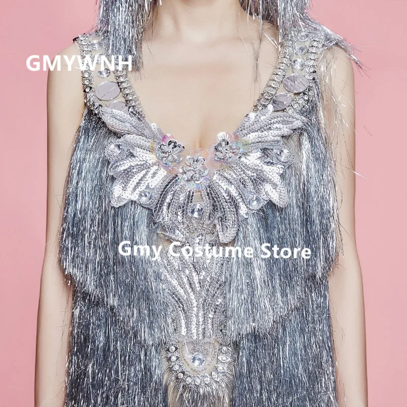 Post a Comment for "Low Price Z34 Silver tassle sexy dresses women stage wears skirt prom ballroom dance costumes catwalk perform "