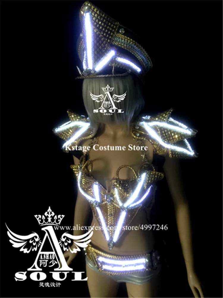 Post a Comment for "Best Product KS51 Party dance stage led light costumes dj robot bodysuit gold mirror dress armor outfits cosplay "