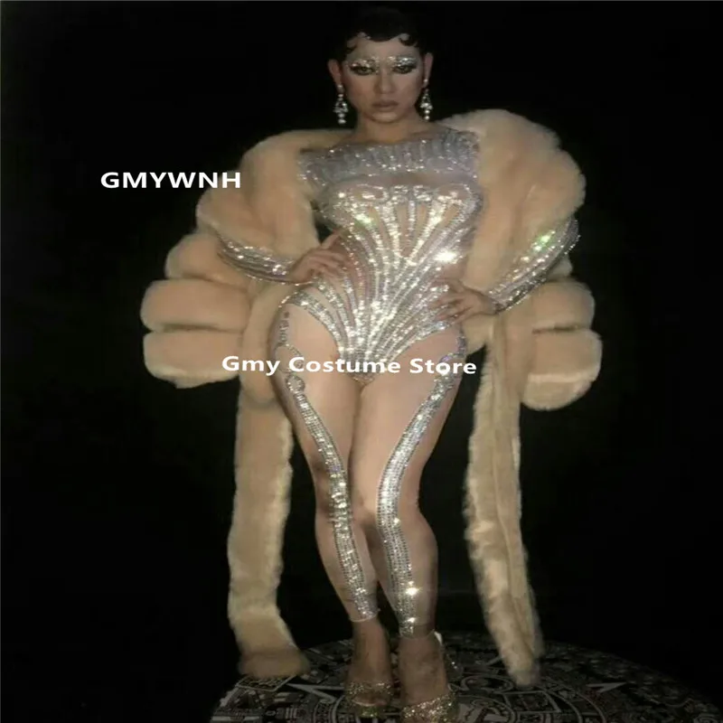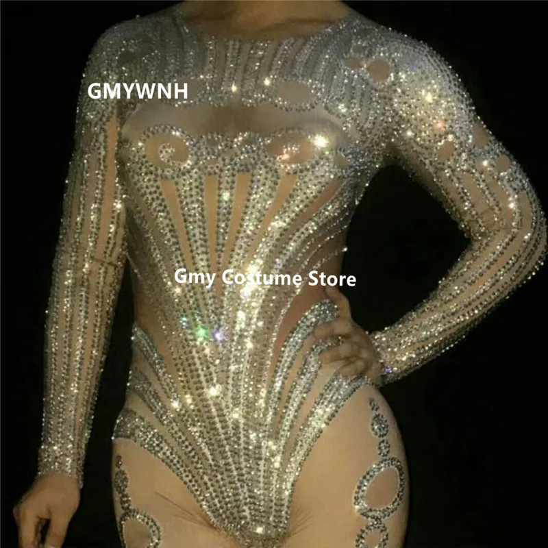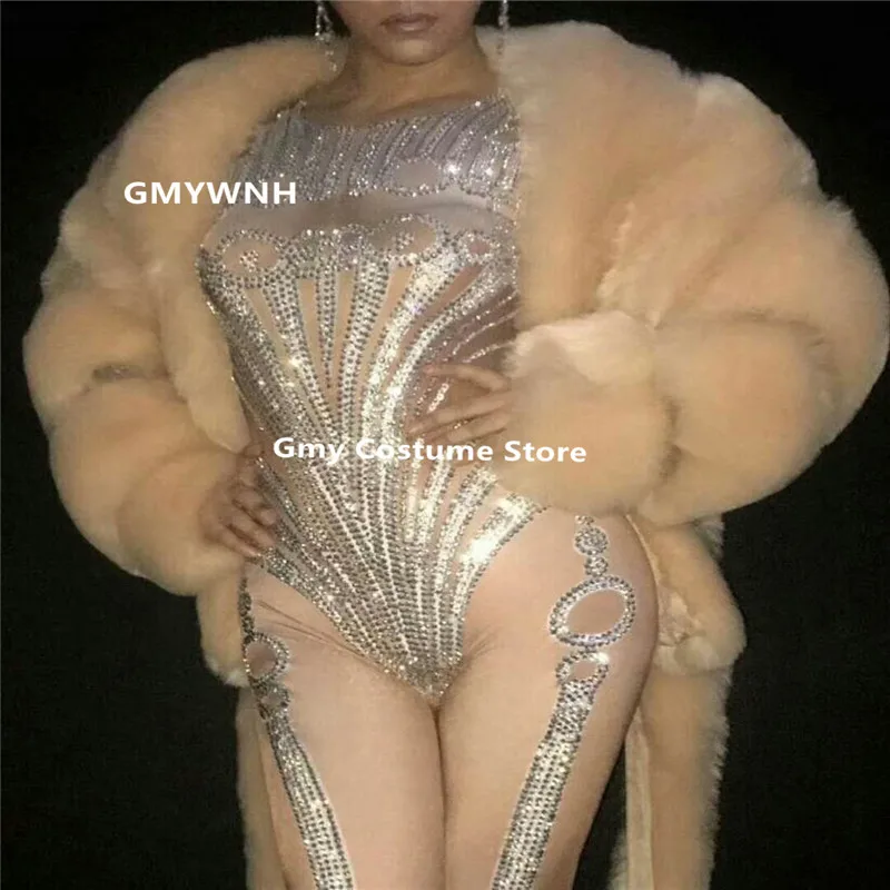 S14 Sexy ballroom dance costumes women stage show jumpsuit wears Nude Rompers dj bodysuit dresses party performance club clothin :Click Here