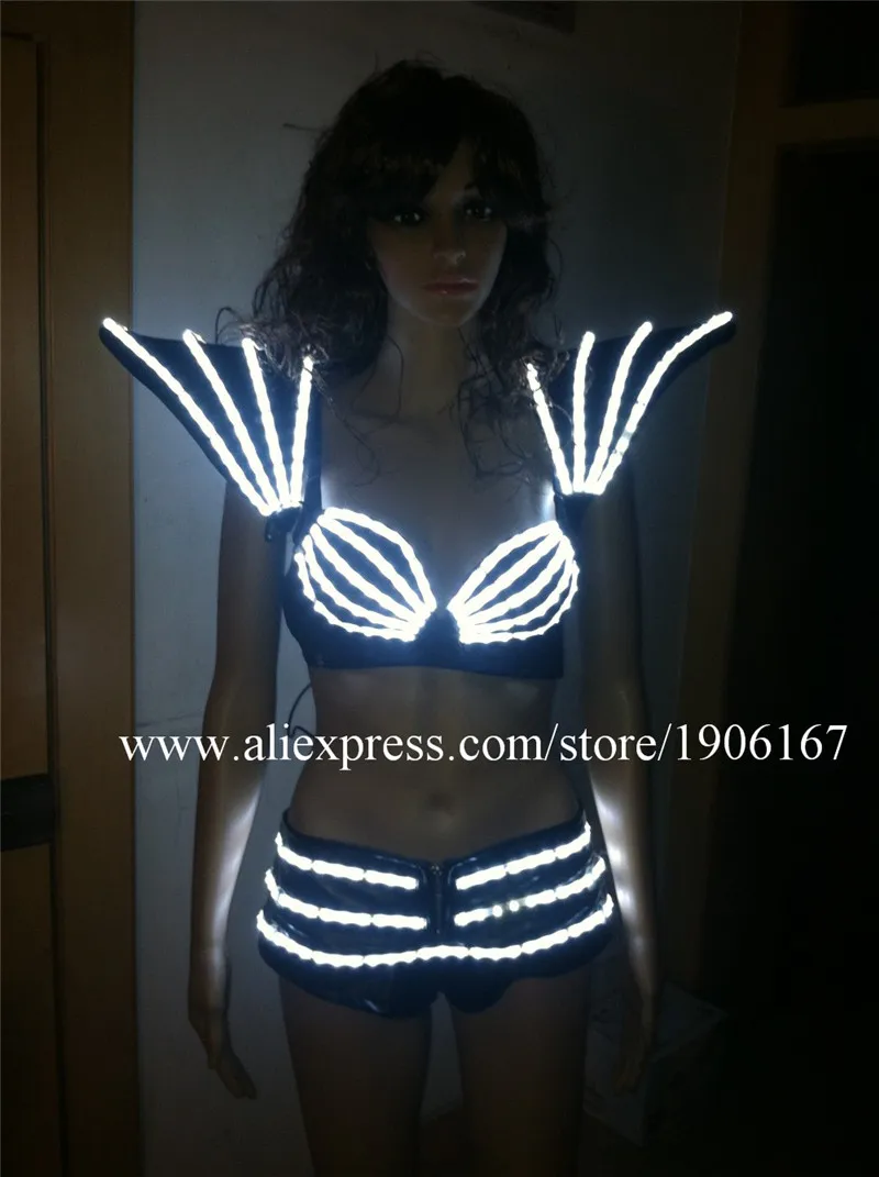 The Latest New Led Flashing Luminous Light Up Sexy Lady DS Dress Pants Bra Shoulder Suit Costume Dance Wear Fo